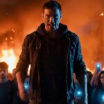 Ultra-realistic cinematic animation of a colossal cloud monster walking menacingly toward the camera in a desert highway. The monster smashes cars, throws sand and debris into the air with each step, its enormous cloudy fists hitting the ground with explosive force. In the foreground, a terrified man runs directly toward the camera, trying to escape and be saved. Dust storms swirl around him as the ground shakes. The camera begins close on the man’s desperate face, then slowly zooms out to reveal the massive scale of the towering cloud monster chasing him, with cars swerving and chaos erupting on the highway. Dramatic lighting, high tension atmosphere, hyper-detailed cinematic realism, 16:9 widescreen